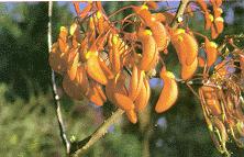 Floração vermelha mais discreta, quase sempre misturada com folhas verdes. Fruto vagem achatada com saliência no local das sementes. Ver mais informações clicando na foto ou em: https://sites.unicentro.br/wp/manejoflorestal/8668-2/ http://www.jardimcor.com/catalogo-de-especies/erythrina-falcata/ |