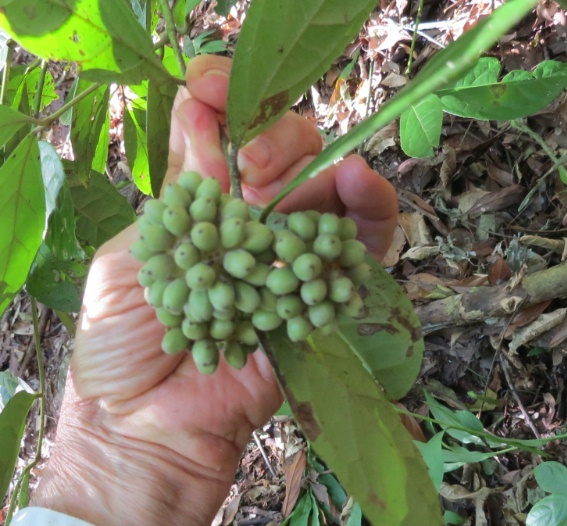 externa fina e dura, sem sabor. Existem varias espécies de Mollinedia, o artigo deste link ajuda a identificar a que tratamos, na pagina 76. Obrigado aos amigos que ajudaram na identificação, Geferson e Geza Arbocz. |