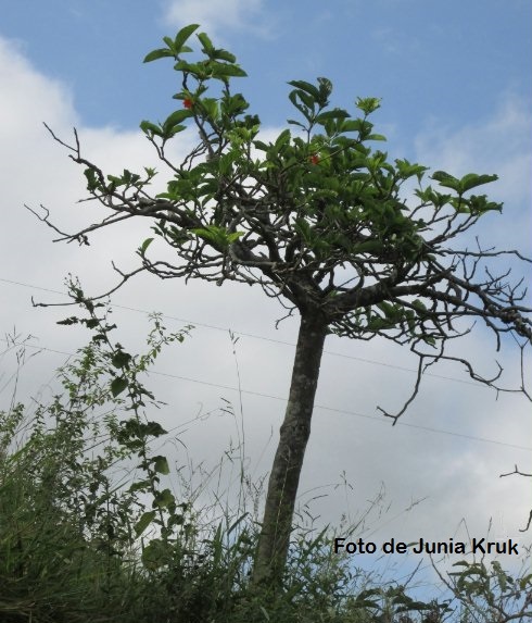 Árvore de pequeno porte, 2 a 4 metros de altura. Folhas