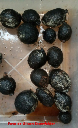 Os exemplares de Gov Valadares apresentaram frutos, parecidos com um Jenipapo, ver