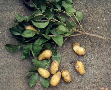 | Características: Árvore de médio a grande porte, 20 a 25 metros de altura. Folhas imparipinadas, 5 a 11 folíolos de 9-11 cm. Flores em cachos na extremidade dos ramos, brancas e muito pequenas. Fruto amarelado, com uma única semente. Comestível. Em algumas região se apresenta muito doce, em outras bastante ácido. Muito usado no Nordeste para sucos e sorvetes. Aprox. 2 x 4 cm. | ||