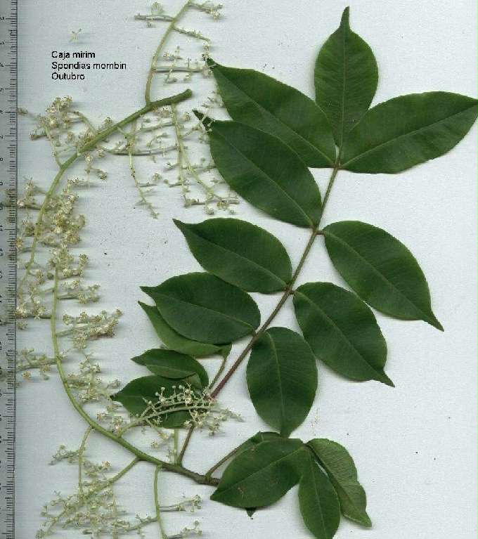 | Nome cientifico: Spondias mombin | Família: Anacardiaceae | Nomes populares: Cajá mirim, Cajazeiro, Taperebá, Imbuzeiro |