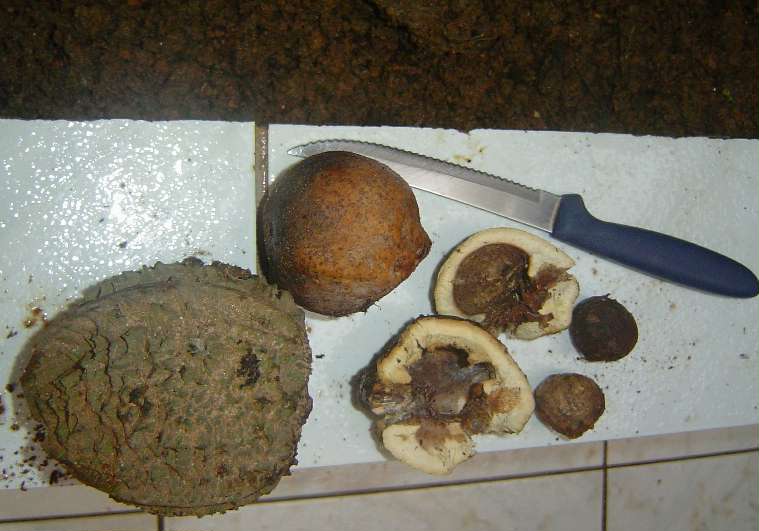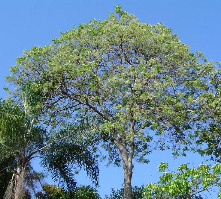 | Características: Árvore de médio a grande porte, 15 a 30 metros de altura. Folhas compostas pinadas, 5 a 6 folíolos, até 20 cm. Floração branca, em cachos, muito pequena. Fruto com 10 cm de diâmetro, polpa externa relativamente macia e endocarpo resistente. É necessário quebrar o endocarpo e extrair as sementes para plantio. Contem duas a três sementes por fruto, 2 a 3 cm de diâmetro. | ||